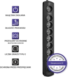 Otsid universaalset lahendust mitme seadme toitmiseks ühest pistikust? See ülepinge kaitsega liist pakub ohutuse, ergonoomika ja disaini kombinatsiooni. Tänu 8 pistikupesale ühendad hõlpsalt teleri, arvuti, laadijad ja köögiseadmed ning 1,8 m kaabel annab piisava ulatuse.