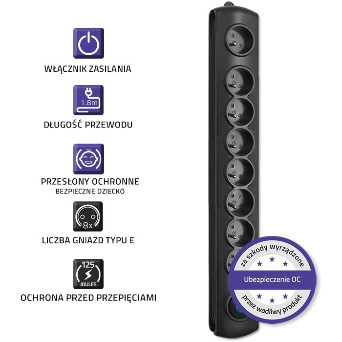 Kaitse on esikohal: sisseehitatud ülepinge kaitse (varistor) hoiab seadmeid pingetippude eest, lastekaitsed igas pistikupesas väldivad juhuslikku kontakti ja leekkindel PP-materjal suurendab ohutust igapäevasel kasutamisel kodus, kontoris ja töökojas.