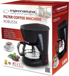 Kohvimasin Esperanza Robusta toob teie kööki mugavuse ja tõhususe. See on varustatud automaatse väljalülituse funktsiooniga 40 minutit pärast tsükli lõppu, mis tagab ohutuse ja energiasäästu. Tänu püsivale, korduvalt kasutatavale filtrile vähenevad kasutuskulud.