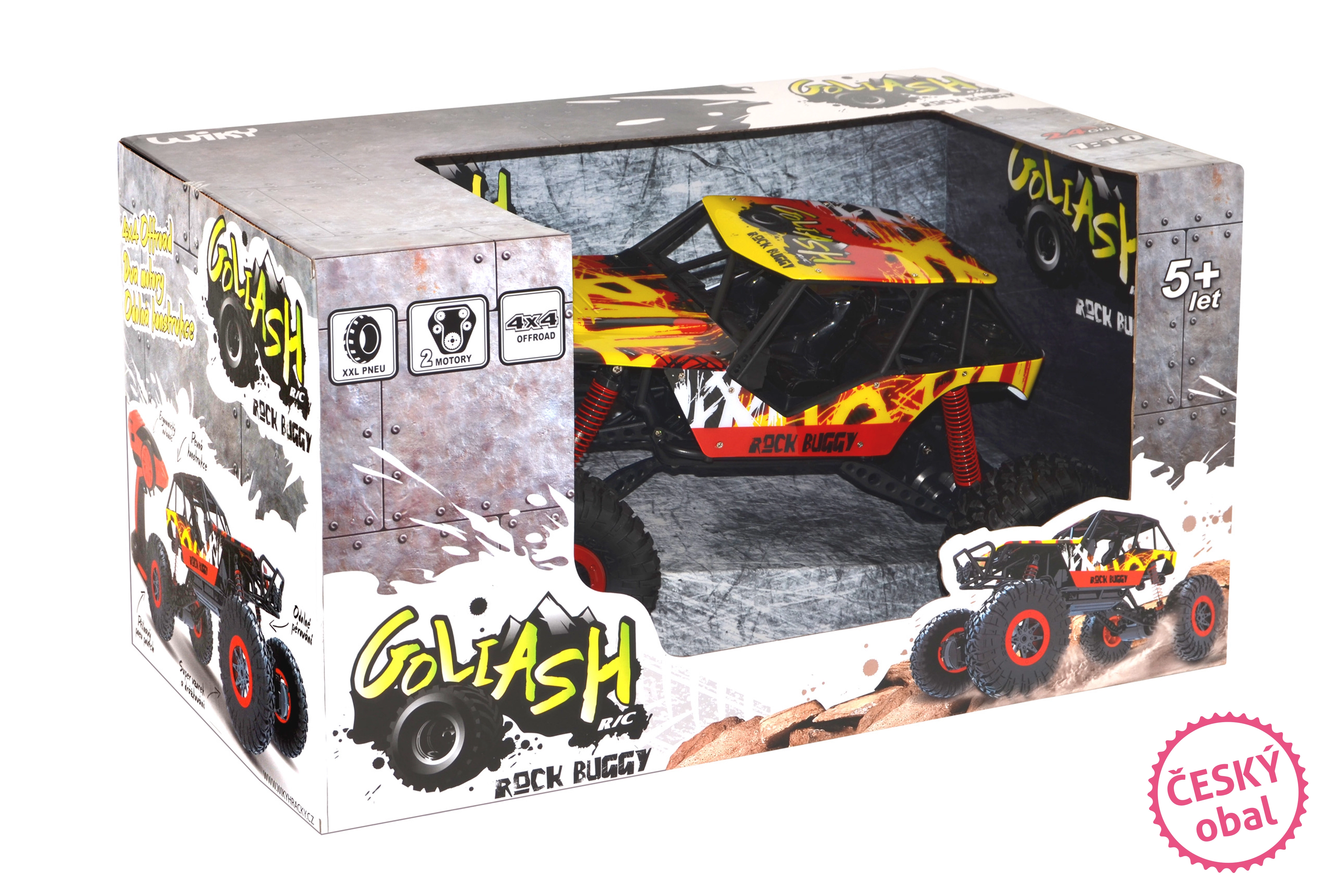 Maalikindel RC-auto Rock Buggy Goliash saab hakkama iga väljakutsega. Tänu 4x4 veole, XXL haarduvatele rehvidele ja vastupidavale vedrustusele vallutab see liiva, lume ja pori. Saavutab kiiruse kuni 10 km/h, on eesmised LED-tuled ning täiustatud 2,4 GHz saatja, mis ei häiri teisi mudeleid. Ideaalne valik nii väikestele kui ka suurematele seiklejatele.