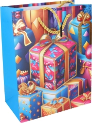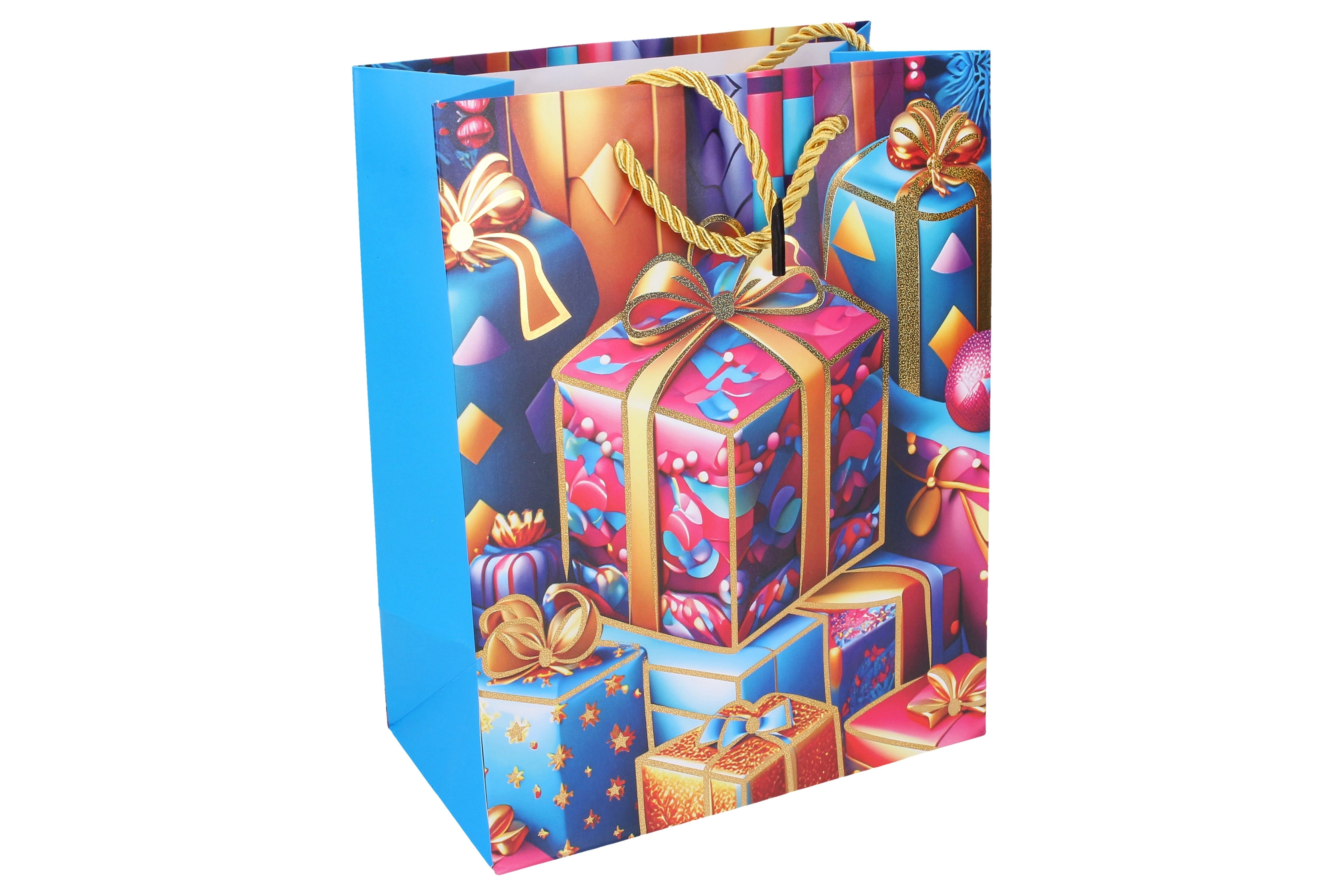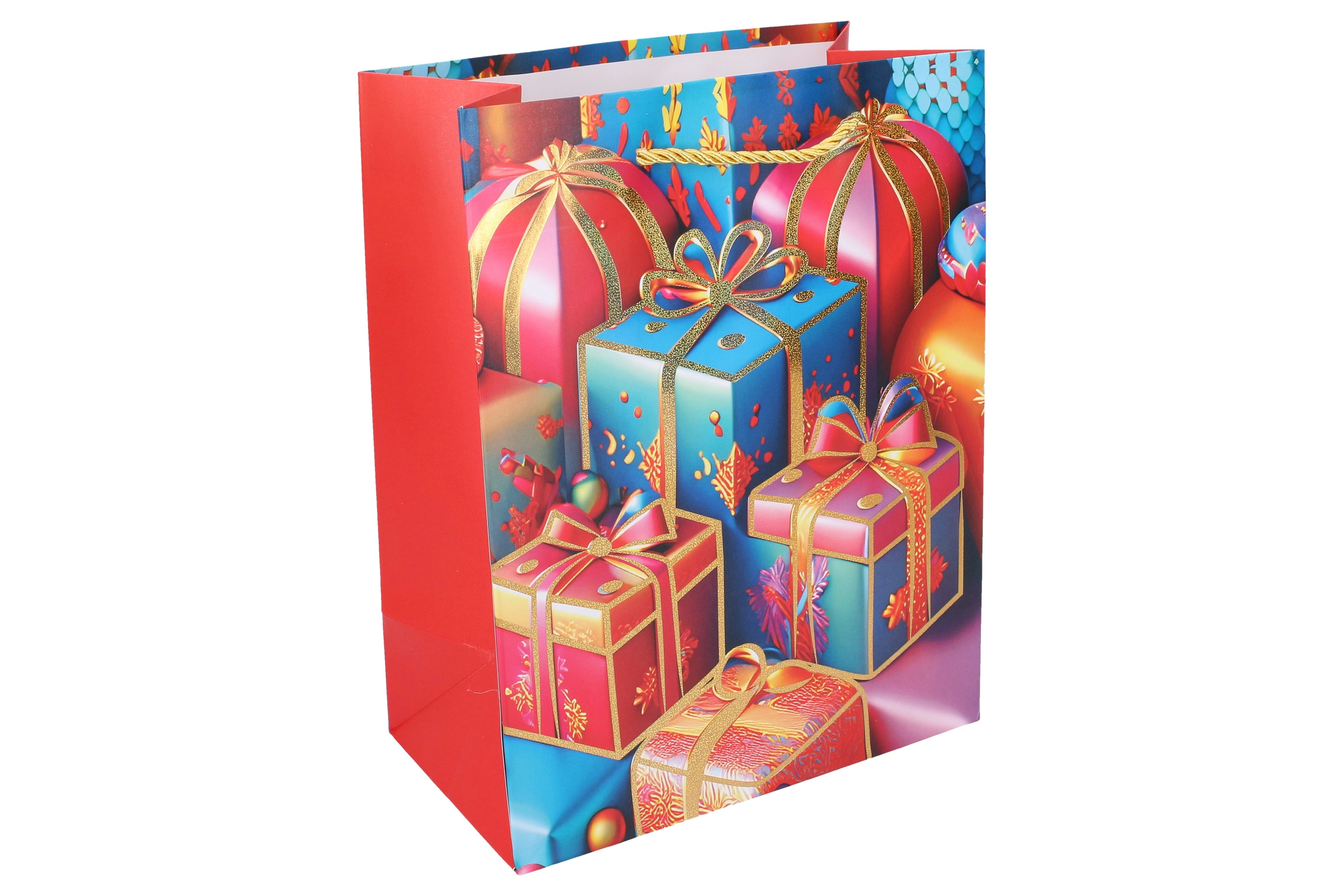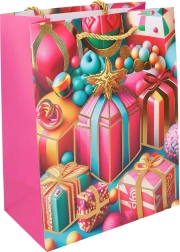 Stiilne jõulukinkekott suuruses S (23 × 18 × 10 cm) kiireks ja elegantsiks kinkide pakkimiseks. Pakub 4 pidulikku varianti, on vastupidav, praktiline ja sobib väikestele kuni keskmise suurusega kingitustele.