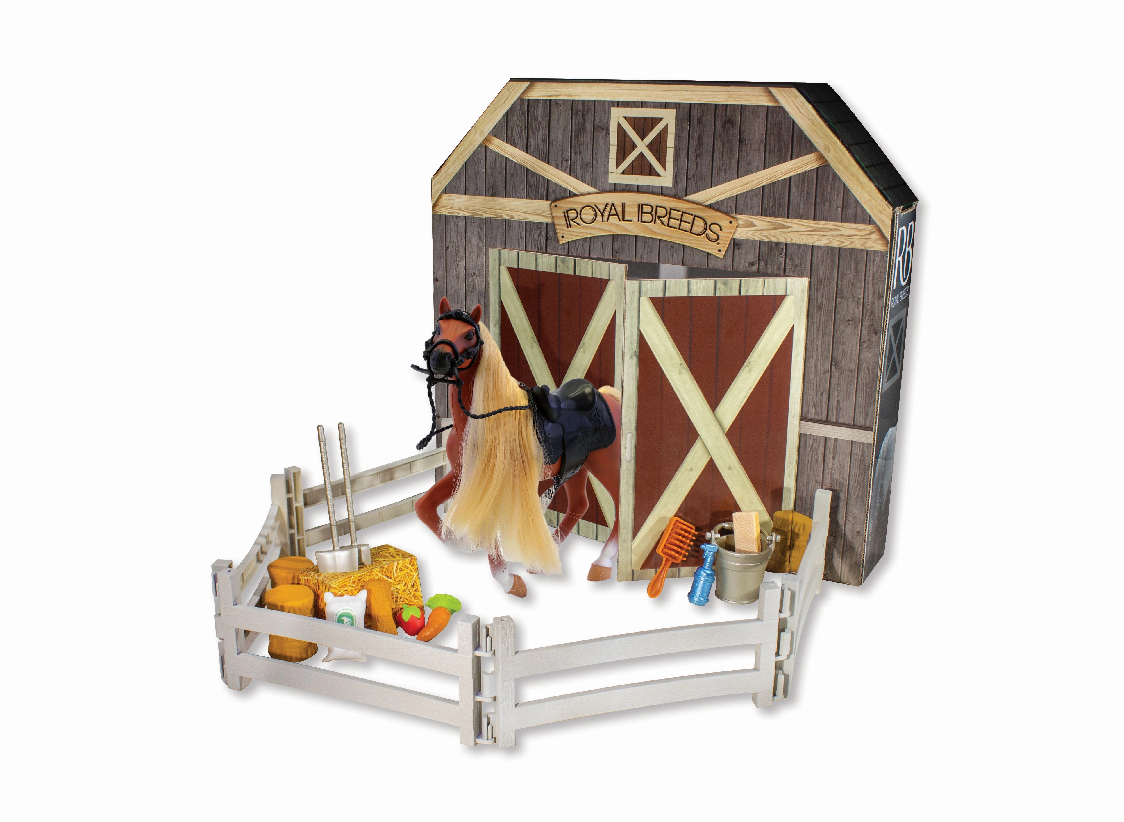 Royal Breeds hobune koos aiaga on ideaalne lisand igale väikesele hobusesõbrale. Komplektis on mitmekesine tarvikute valik, mis toetab loovat mängu.