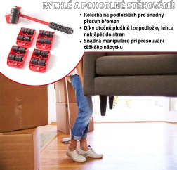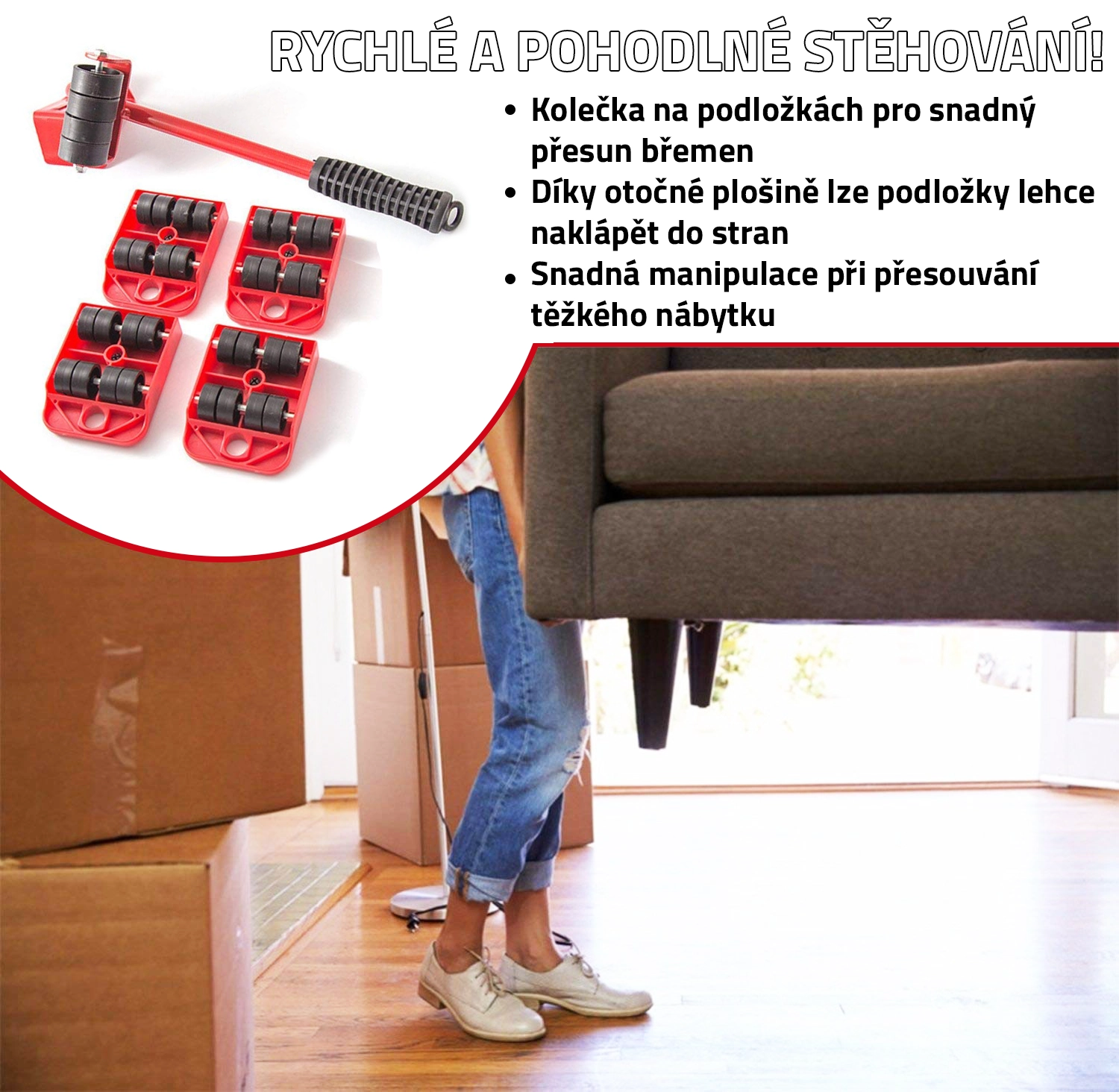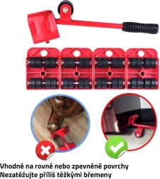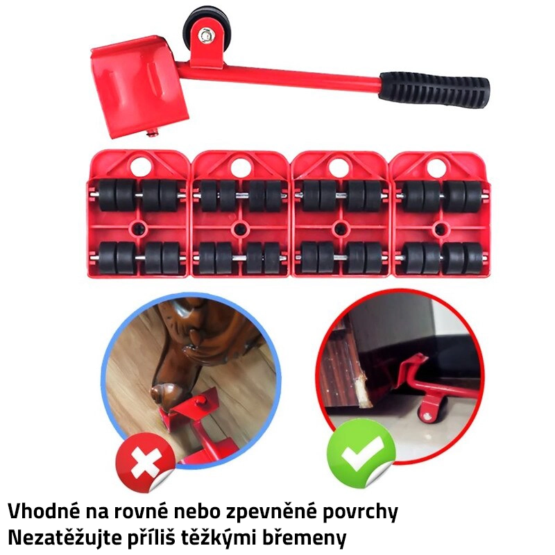 Praktiline komplekt raskete mööbliesemete ja kodumasinate lihtsaks teisaldamiseks kuni 150 kg. Sisaldab tõstehooba mööbli kergitamiseks ning nelja transpordirullikut libisemisvastase aluspinnaga ja 360° pöörlemisega, millega nihutate pesumasina, külmiku või kapi kiirelt, ohutult ja pingutuseta.