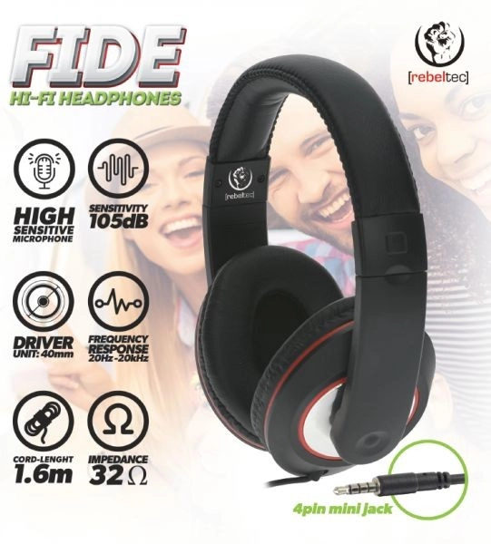 Universaalsed FIDE stereokõrvaklapid pakuvad puhast ja tasakaalustatud heli tänu 40 mm draiveritele, mugavat kandmist ning usaldusväärset juhtmel asuvat mikrofoni. Ühe Smart Button nupuga võtad ja lõpetad kõnesid või juhid muusikat, samal ajal kui 4-kontaktiline 3,5 mm pistik tagab ühilduvuse nutitelefonide, tahvelarvutite ja sülearvutitega, millel on kombineeritud audiopistik.