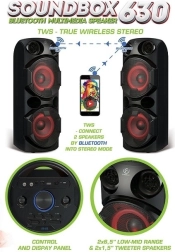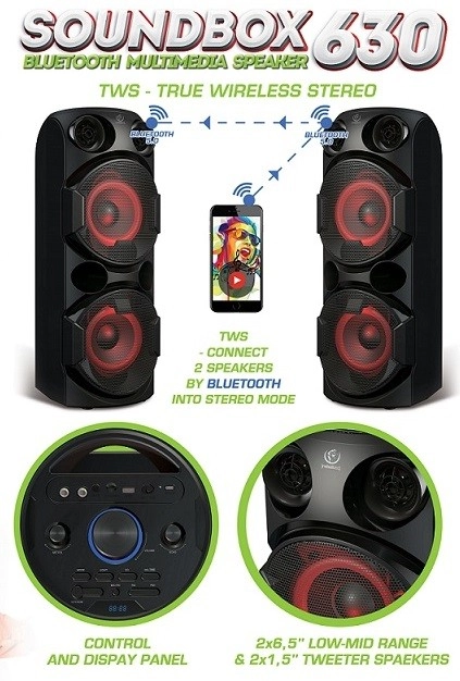 - Režiimid: Bluetooth, TWS, FM-raadio, mälupulk, microSD kaart, AUX, Microphone IN