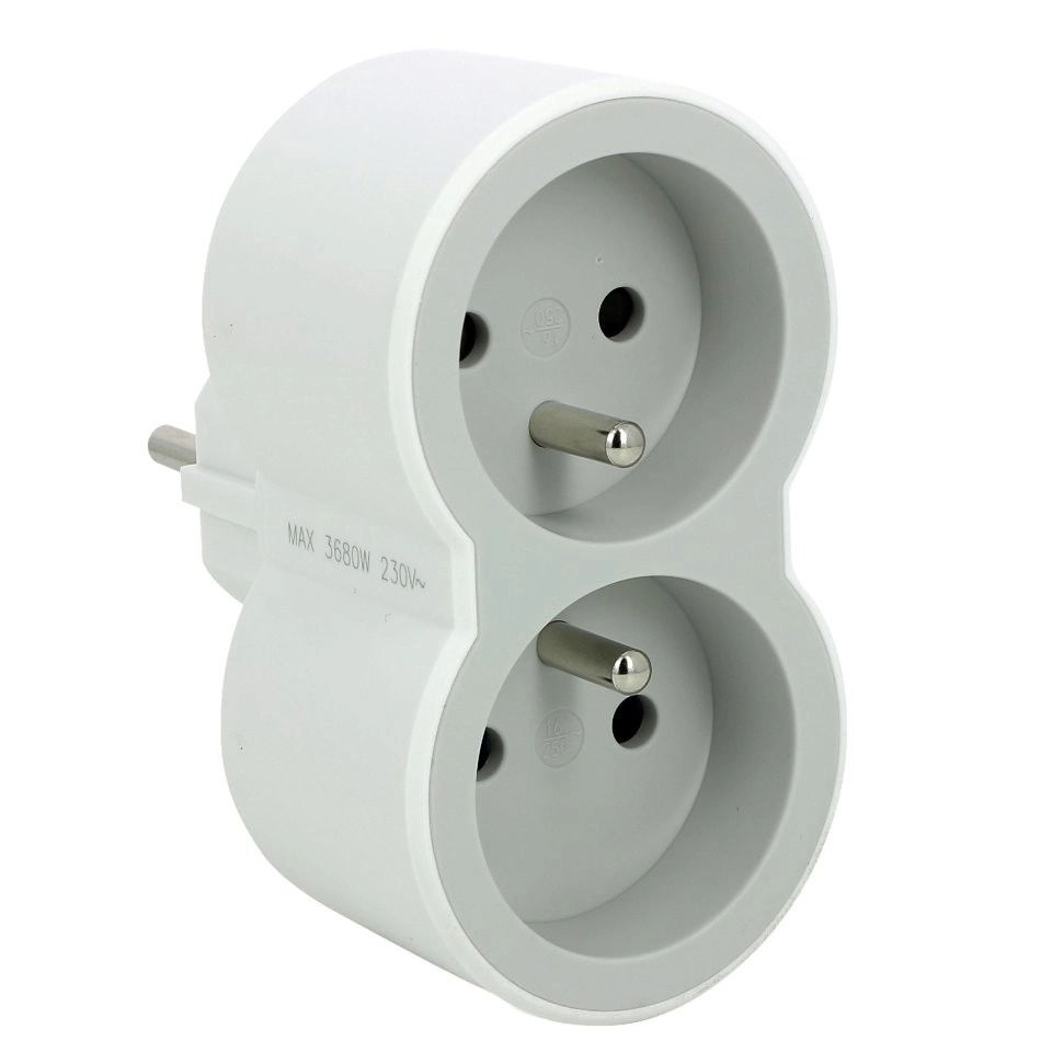 Kõrgekvaliteediline elektriline harukarp, mis võimaldab muuta ühe pistikupesa kaheks; ideaalne kodudesse ja kontoritesse, kus pistikupesasid on vähe.