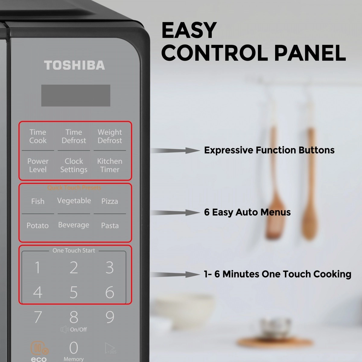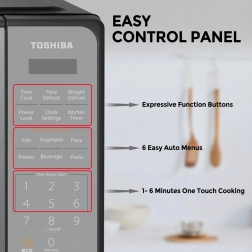Avasta igapäevase toiduvalmistamise lihtsus Toshiba mikrolaineahjuga, mis tänu kompaktsetele mõõtudele sobib enamikku köökidesse. Moodne peegelviimistlus täiendab stiilselt interjööri ning selge puutetundlik paneel tagab kiire juurdepääsu lemmikfunktsioonidele.