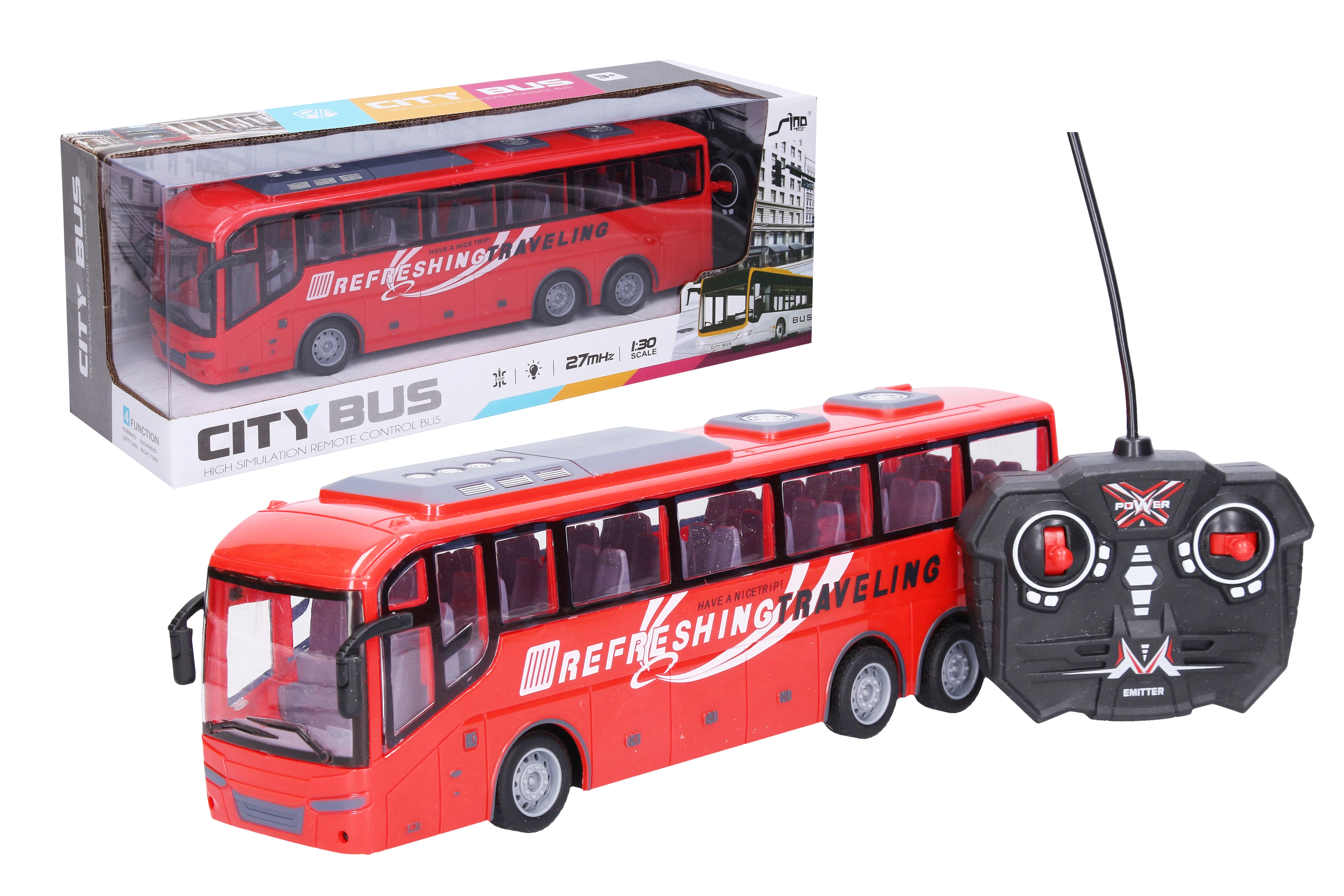 Nauti realistlikku sõitu selle kaugjuhitava RC-bussiga pikkusega 32 cm. See pakub 27 MHz sagedust, valgusefekte ning mugavat laadimist kaasasoleva adapteriga. Puldile mõeldud patareid ei kuulu komplekti.