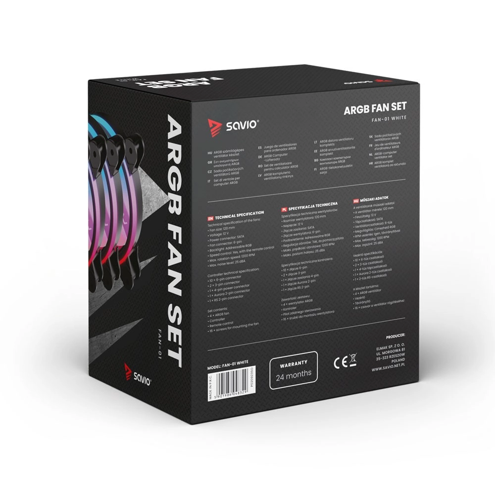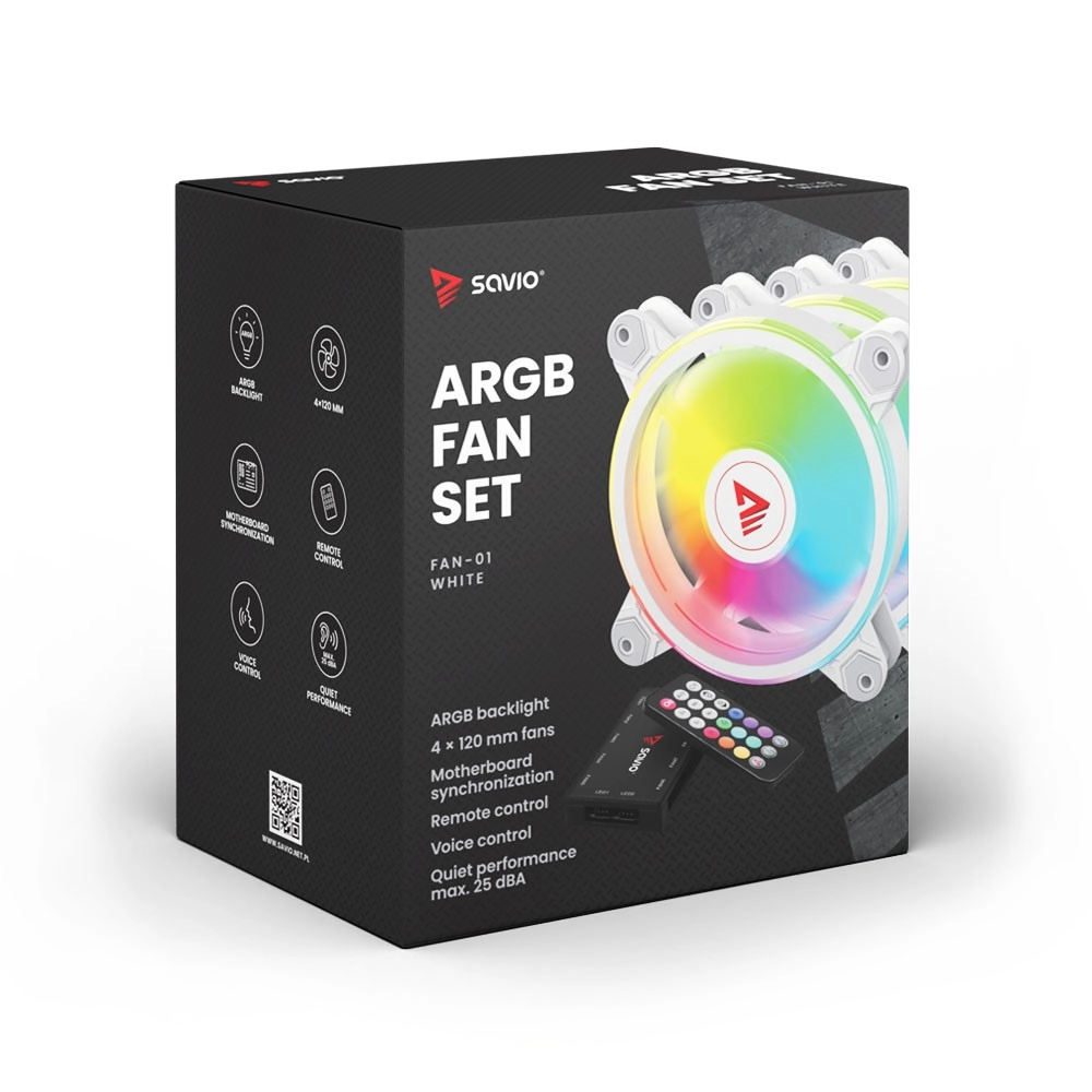 Savio nelja ventilaatori komplekt pakub tõhusat jahutust ja muljetavaldavat ARGB-valgustust teie arvutile. Komplektis on kontroller ja kaugjuhtimispult, mis võimaldavad lihtsat valgusefektide ja ventilaatorite kiiruse kohandamist.