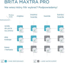 Vahetusfiltrid BRITA MAXTRA PRO Pure Performance pakuvad puhtamat ja parema maitsega vett eriti pehmele kuni keskmise karedusega veele. Üks filter puhastab kuni 150 liitrit või kestab kuni 4 nädalat, mis tähendab suuri sääste ja vähem plastijäätmeid. Ühildub kõigi BRITA kannudega seeriatest Aluna, Style, Marella, Elemaris, Flow ning klaaskannuga Glass.