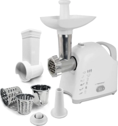 Universaalne hakklihamasin koos riiviga ESPERANZA Wellington ühendab kõrge jõudluse ja praktilisuse igasse kööki. Tänu kuni 2200 W mootorile jahvatad hõlpsalt liha ja teisi koostisosi ning kolme jahvatusketta abil saavutad soovitud jämeduse. Vahetatavad otsikud võimaldavad vorstide valmistamist ja kebab/kebbe tegu, samal ajal kui kolm trummelriivi töötlevad kiiresti puu- ja köögivilju, juustu, šokolaadi või pähkleid. Metallist tigukäiguga ajam, roostevabast terasest nuga ja libisemiskindlad jalad tagavad pika tööea ja ohutu kasutuse.