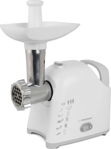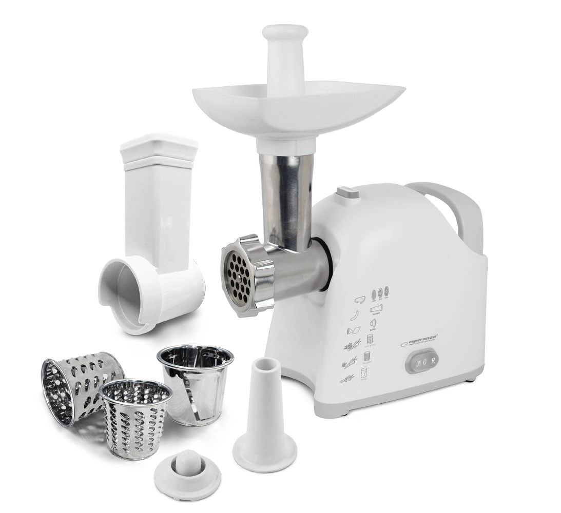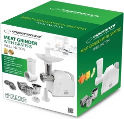 ESPERANZA Wellington on moodne ja funktsionaalne abiline, mis ühendab ühes korpuses hakklihamasina ja riivi. Jahvatusrežiimis tuleb see toime mitte ainult lihaga, vaid ka teiste toiduainetega, sh kotletitaigna või pasteedi segude valmistamisega. Riivirežiim hõlbustab puu- ja köögiviljade, kõva juustu, šokolaadi või pähklite viilutamist ja purustamist – ideaalne kiirete salatite, magustoitude ja puistete jaoks.