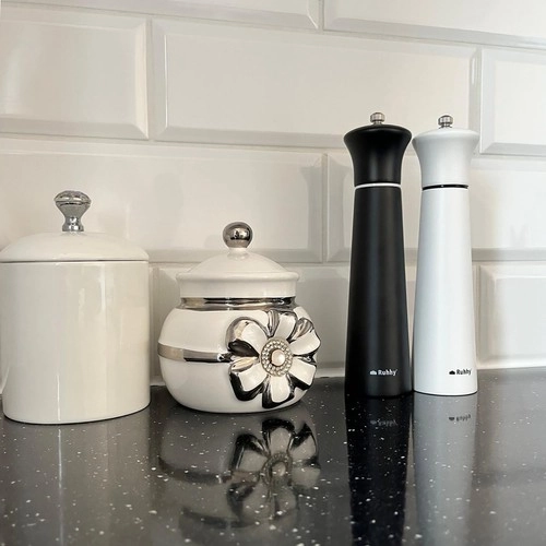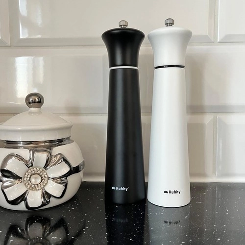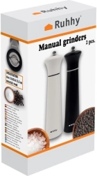 Elegantne kahe käsiveski RUHHY komplekt musta ja valget värvi värvilahenduses värskelt jahvatatud soola ja pipra jaoks. Pakub keraamilist jahvatusmehhanismi, sujuvat jahvatusastme reguleerimist ja ergonoomilist kuju mugavaks kasutamiseks. Tänu kvaliteetsetele materjalidele ja moodsale disainile on veskid vastupidavad, täpsed ja kergesti puhastatavad.