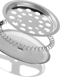 Metallist sõel koos vedruga püüab usaldusväärselt kinni kohvisetu ja teelehed ning tagab puhta, täidlase ja tasakaalus joogi.