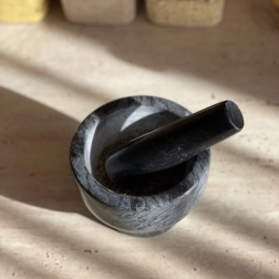 RUHHY marmorist uhmr on usaldusväärne abiline kõigile, kes hindavad ehedat maitset. Looduslik marmor tagab pika tööea, vastupidavuse pragudele ja kriimustustele ning tänu oma kaalule pakub erakordset stabiilsust töötamisel. Kausi ja tambi õrnalt kare sisepind maksimeerib hõõrdumise ja tagab täpse peenestamise ilma liigse pingutuseta.