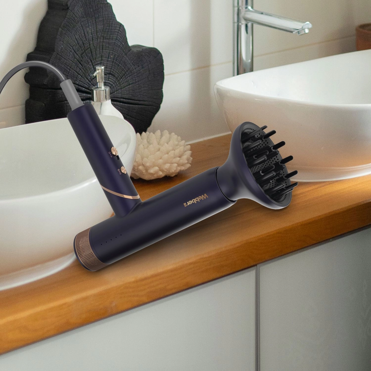 Elegantne juukseföön WEBBER STELLA võimsusega 2000 W pakub 3 õhuvoolu astet, 2 temperatuuri taset, ionisatsiooni funktsiooni ja külma õhu nuppu. Tänu Ultra‑Silence tehnoloogiale on kuivatamine vaiksem; lisaks on ülekuumenemiskaitse, eemaldatav kontsentraator ja difuuser ning pikk 3 m kaabel mugavaks soenguks ilma piiranguteta.