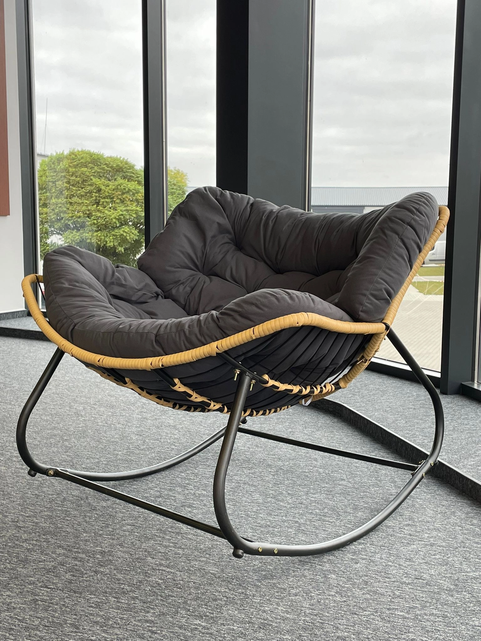 Cocoon-kiiktool toob interjööri harmoonia looduslike joonte ja modernse disaini vahel. Pehme hall polster tagab meeldiva mugavuse nii lugemiseks kui ka puhkamiseks, samal ajal kui PE-rotangi punutis ja metallraam pakuvad pikaealisust ja stabiilsust.