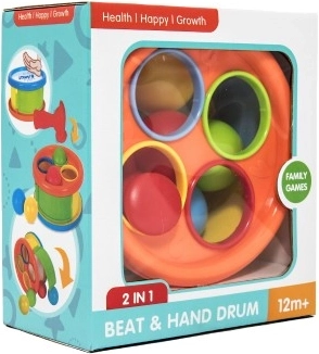 Vasarapink ja trumm 2-ühes pakub kahte mänguasja ühes – värviliste kuulide vasardamist haamriga ja trummimängu. See mitmekesine ja interaktiivne toode toetab laste oluliste oskuste arengut.