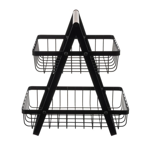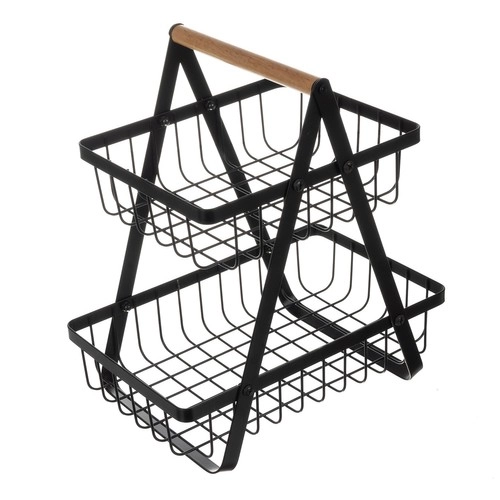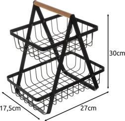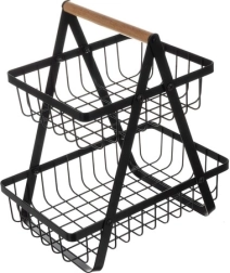 Elegantne kahekorruseline puu- ja köögiviljakorv puidust käepidemega pakub suurt mahutavust väikesel pinnal, stabiilset alust ja lihtsat kandmist. Minimalistlik must disain sobib suurepäraselt loft- ja kaasaegsetesse köökidesse, avatud konstruktsioon tagab õhuringluse ja pikema värskuse hoiustatud toidule.