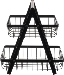 Praktiline kahetasandiline stend vastupidavast terasest koos mugava puidust käepidemega aitab korrastatult hoiustada puuvilju, köögivilju ja snäkke. Tänu kõrgetele servadele püsivad tooted kindlalt paigal ja lai alus tagab stabiilsuse ka täiskoormusel.