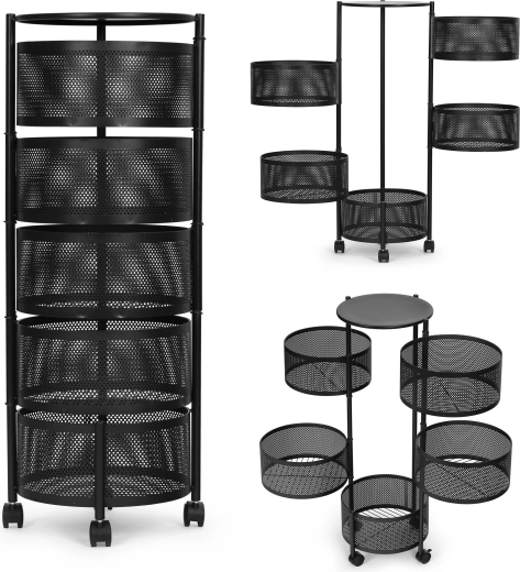 Viis ümmargust korvi pöörlevad sujuvalt ja kallutuvad küljele, et pääseksid kergesti kõigile vajalikele esemetele. Kõrged servad takistavad väljakukkumist ning perforatsioon soodustab õhuringlust.