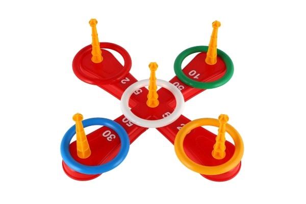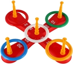 Mäng sisaldab ristkülikutega alust ja värvilisi rõngaid lõbusaks viskamiseks.