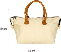 Suur põhisahtel tõmblukuga ja ajatult beež värv universaalseks kasutuseks nii kärukotina kui ka reisikotina.