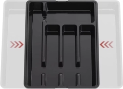 Praktiline must sahtlikorraldaja venitatava mehhanismiga kohandub hõlpsalt sahtli laiusega ja hoiab kõik söögiriistad ning köögitarbed omal kohal. Valmistatud vastupidavast PP-st, sile pind lihtsaks puhastamiseks ja kuni 7 selget sektsiooni. Ideaalne universaalseks kasutuseks, kiireks korrastamiseks ja modernseks välimuseks igas köögis.