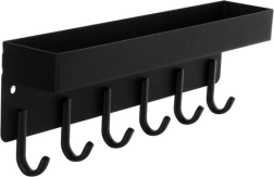 Laius 24,5 cm, kõrgus 8,5 cm ja sügavus 5 cm säästavad ruumi ning samas pakuvad 6 konksu ja ülemise servaga riiuli.