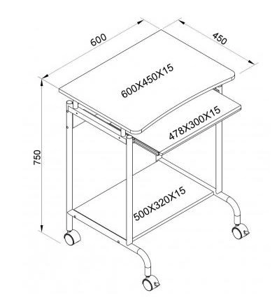 - Peamine tööpind (60 × 45 cm) vaba alaga hiirele, vihikutele või tarvikutele.