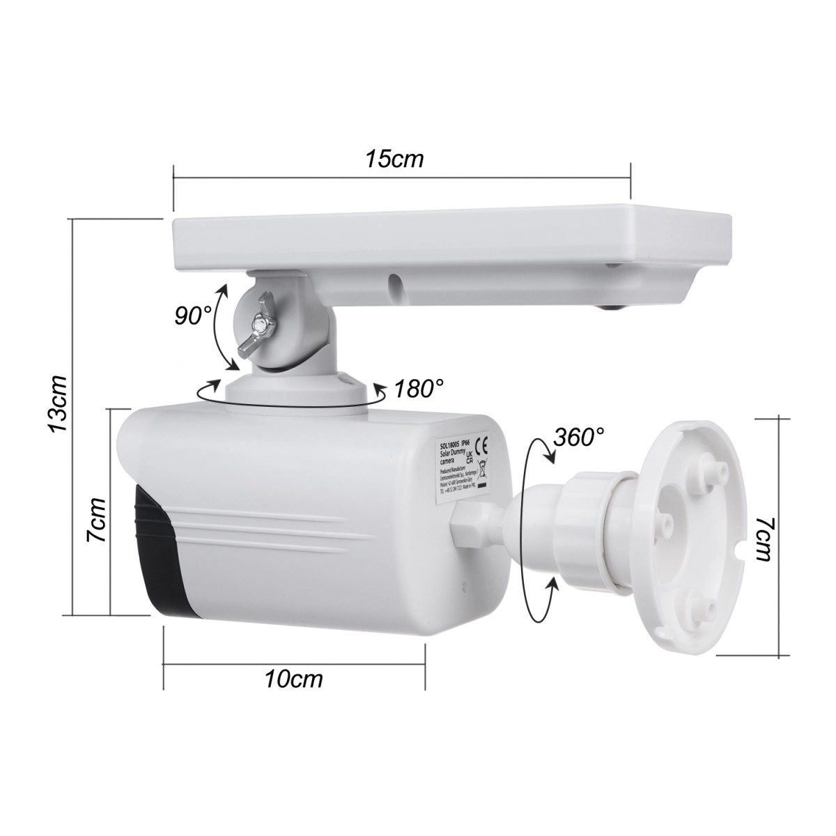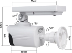Päikesepatareiga turvakaamera atrapp ühendab realistliku välimuse praktilise LED-valgustusega, mis aktiveerub automaatselt liikumise tuvastamisel. Integreeritud paneel on reguleeritav, et saaksite maksimaalselt ära kasutada päikeseenergiat ning nautida juhtmevaba, hooldusvaba lahendust väliturvalisuseks.
