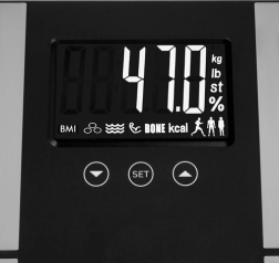 Tark RUHHY analüütiline kaal annab teile täpse ülevaate kehast: kaal 5–225 kg, BMI mõõtmine, keharasv, vesi ja lihasmass. Sellel on selge LCD-ekraan, kuni 10 kasutajaprofiili nutika tuvastusega ja lihtne juhtimine nuppudega SET/UNIT. Vastupidav konstruktsioon klaasist ja ABS-ist, automaatne väljalülitus ning ühikute valik kg/lb/st mugavaks kasutamiseks kogu perele.