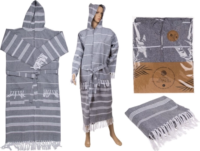 Traditsioonilistest Türgi hamamidest inspireeritud vannisärk on teie ideaalne kaaslane igapäevaseks vanniskäiguks, saunaks või spaakülastuseks. Selle hommikumantli omadused teevad sellest suurepärase valiku: