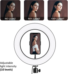 Professionaalne 10" läbimõõdu ja 12 W võimsusega rõngaslamp 160 LED-iga pakub ühtlast ja pehmet valgustust fotodeks, meigiks, videokõnedeks ja otseülekanneteks. Komplektis on stabiilne statiiv kuni 110 cm kõrgusega, USB-toide ning juhtpuldiga kaabel värvustemperatuuri ja heleduse reguleerimiseks. Pakendis on ka Bluetoothi kaugpäästik ja paindlik telefonipidik.
