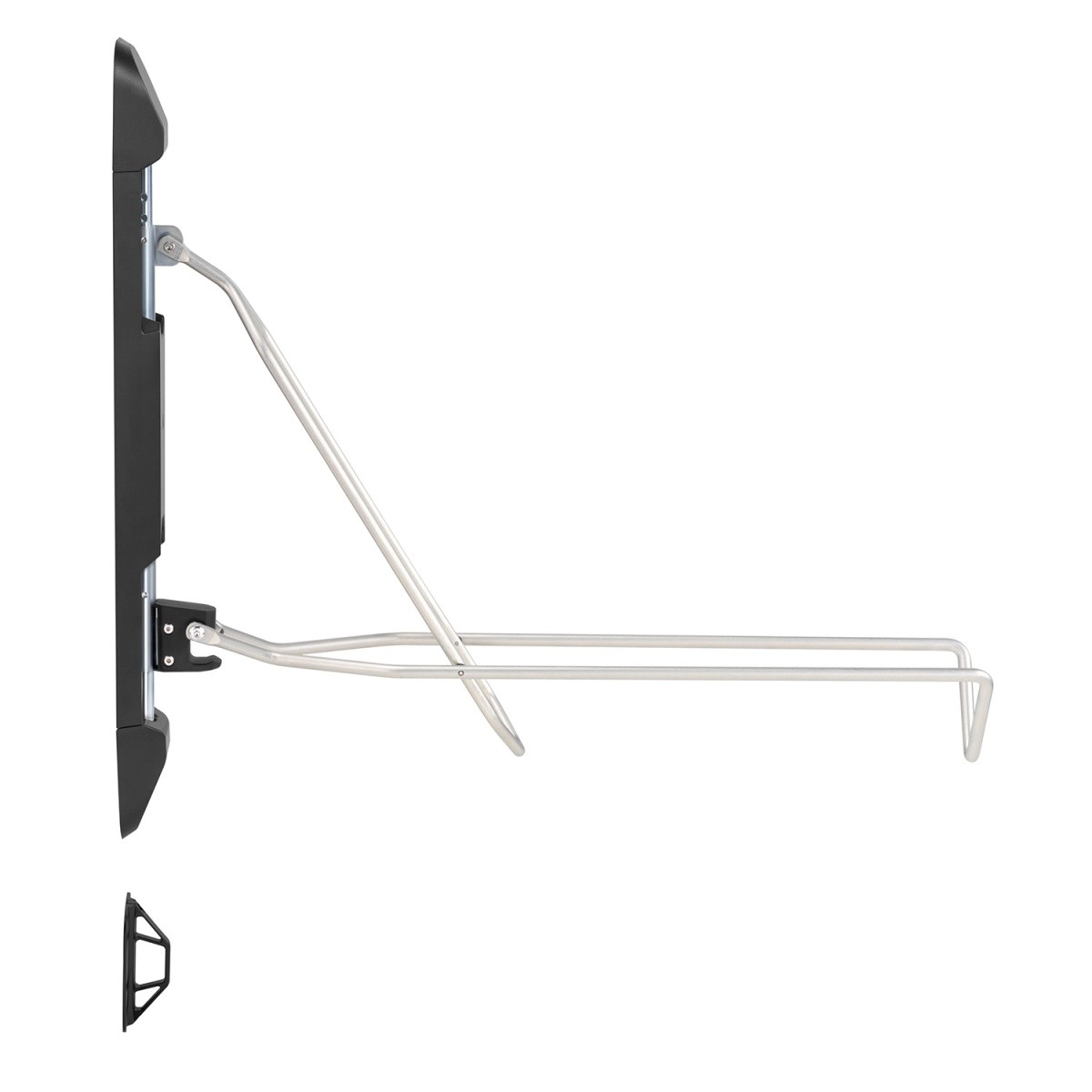 Seinale kinnitatav jalgrattahoidik Maclean võimaldab ratta hõlpsat riputamist ja säästab ruumi. Aseta ratas tagarattale ja kinnita esiratas hoidikusse. Pärast riputamist saab hoidikut pöörata 60 kraadi vasakule või paremale, et säästa veelgi rohkem ruumi.