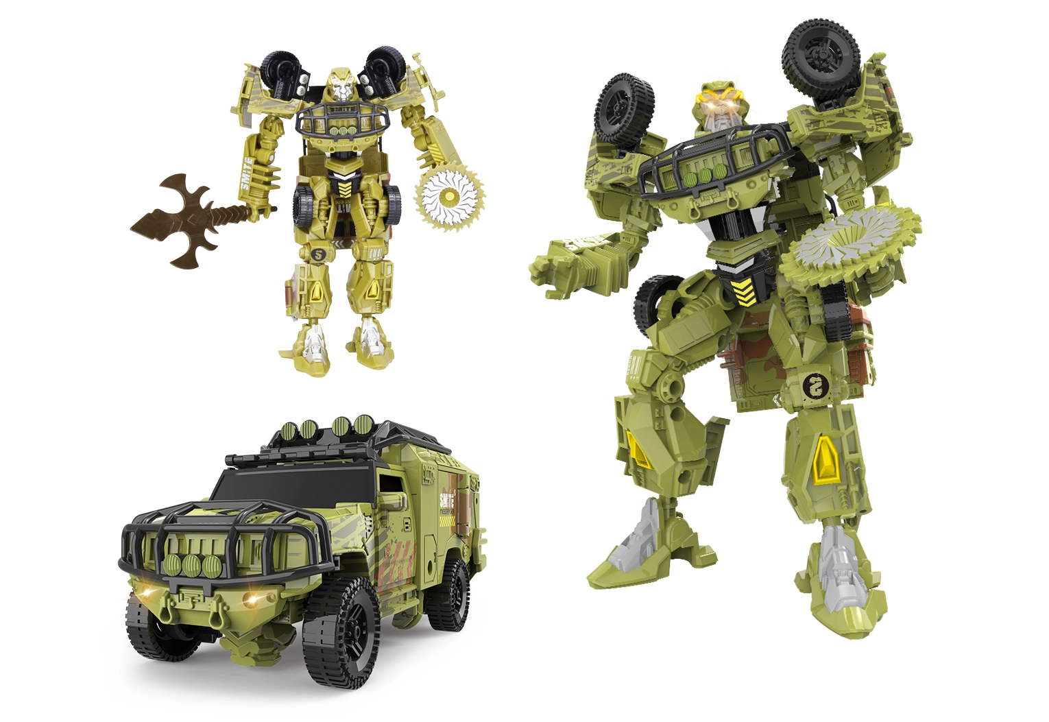 Lõbus 17 cm kõrgune transformeeruv autorobot muutub hõlpsalt soomustatud sõidukiks. Kaasas on kaks relva – mõõk ja saag, vabalt veerevad rattad sujuvaks sõiduks ning liikuvad liigesed efektseteks poosideks. Saadaval kahes värviversioonis (sinine, roheline).