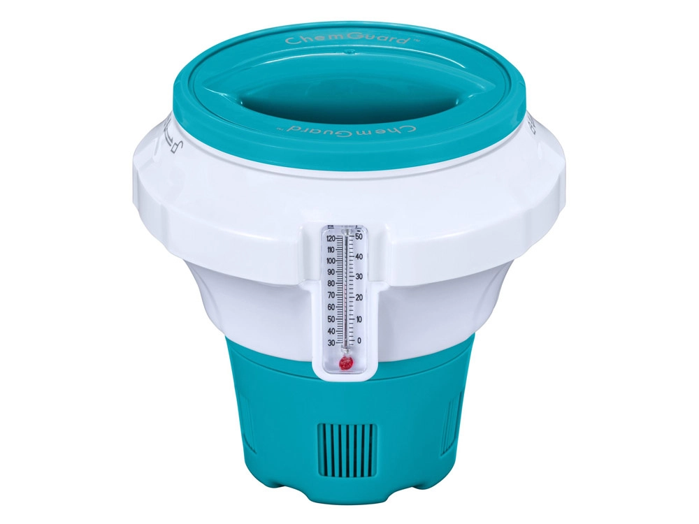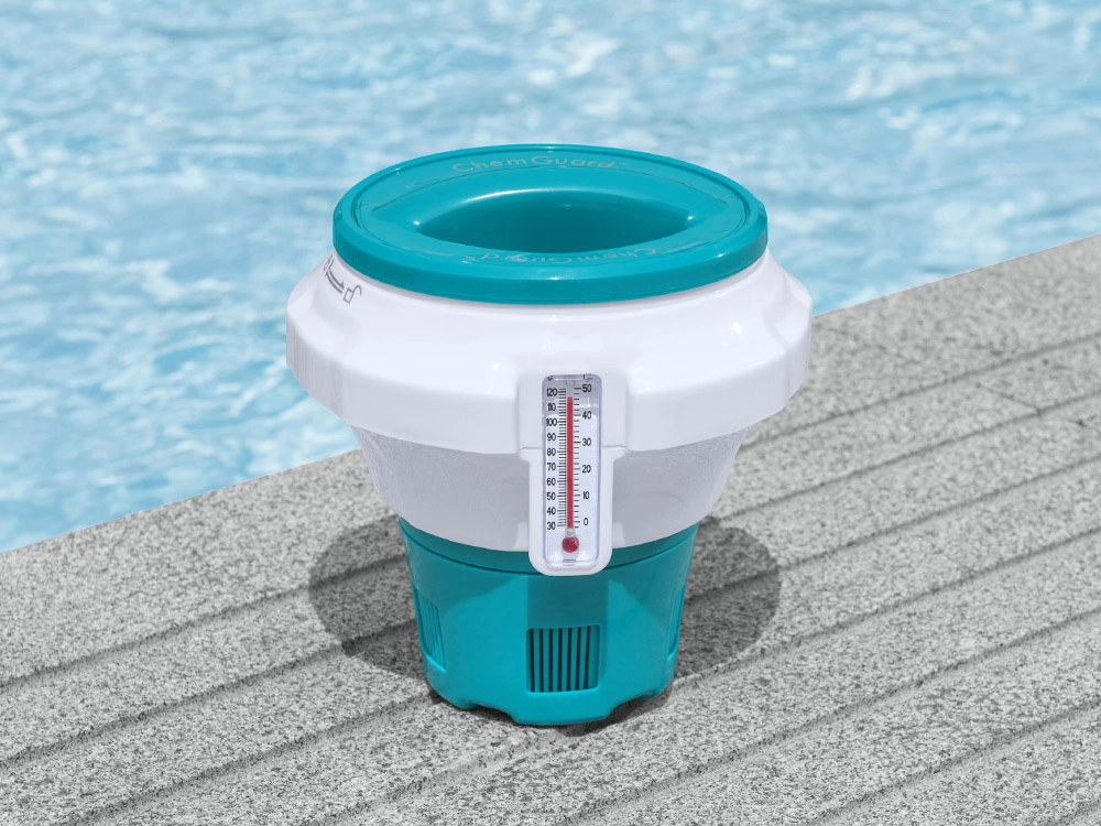 Hoidke basseini ja mullivanni vesi täiuslikult puhas ja ohutu. BESTWAY CHEMGUARD ujuv keemiadoosija koos integreeritud termomeetriga võimaldab täpset kloori või broomi doseerimist, sellel on reguleeritav vabastus, lapsekindel lukk ja lihtne temperatuuri lugemine nii °C kui ka °F.
