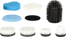 Komplekt sisaldab erinevaid harju ja patju küürimiseks, pesemiseks ja poleerimiseks. Saad hõlpsalt hakkama plaatide, vuukide, sanitaarpindade, klaasi ja pliidiplaadiga.