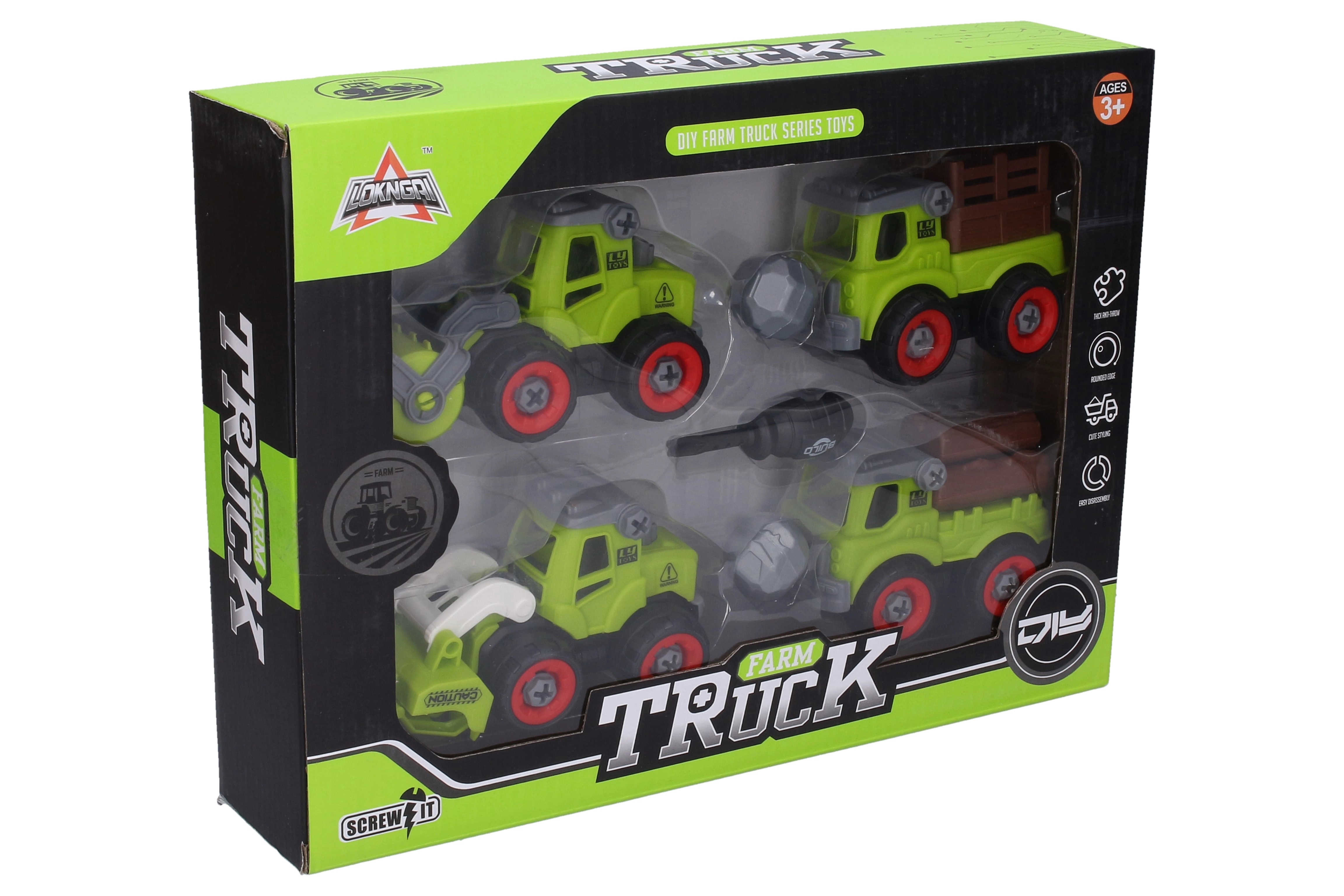 Kruvikeerajaga põllumajandusautod suurusega 13 cm pakuvad väikestele mehaanikutele vahvat ajaviidet. Komplektis on vabalt veerevad rattad ja kruvikeeraja, millega lapsed saavad tundide kaupa mängida ja oma oskusi arendada.