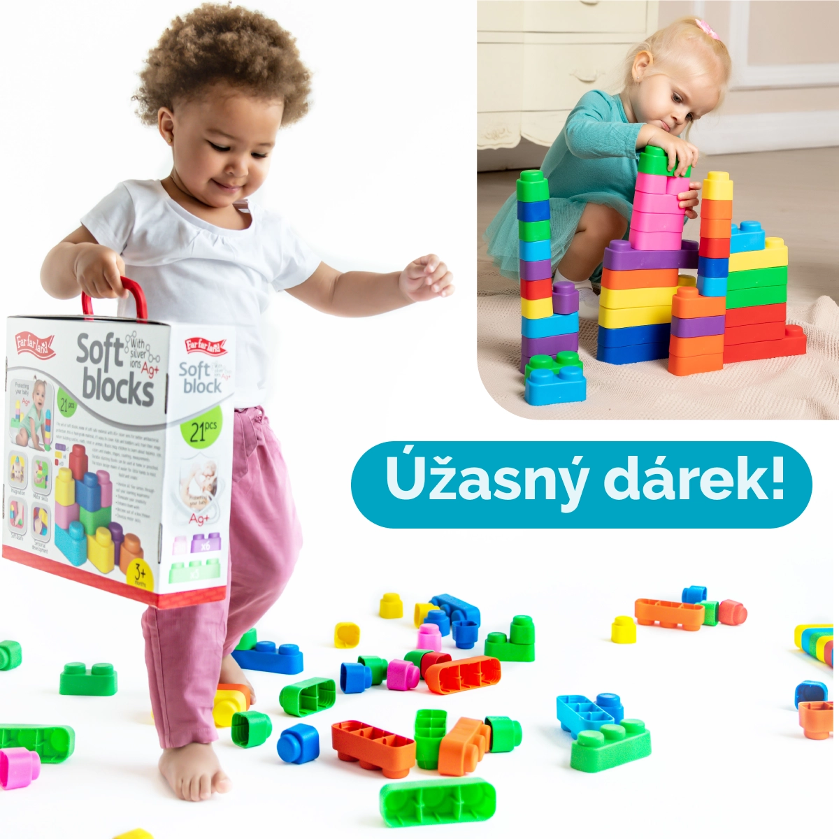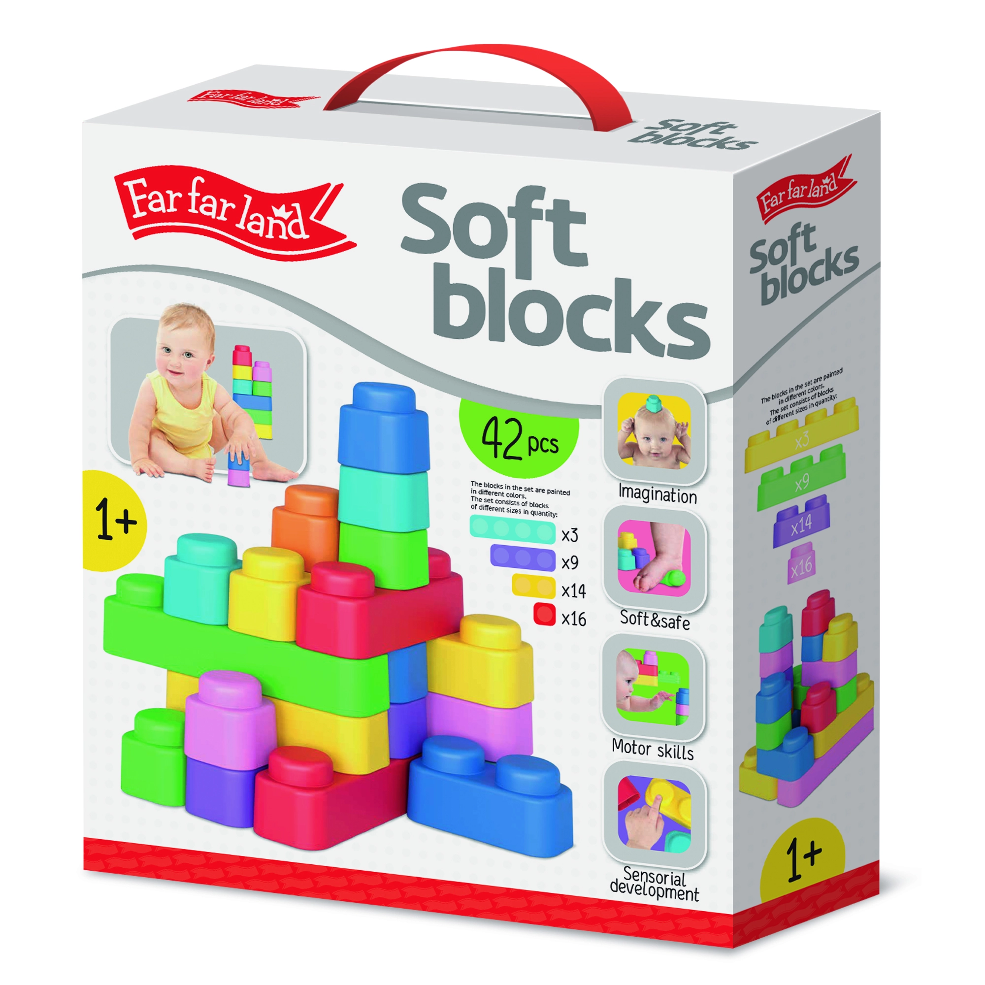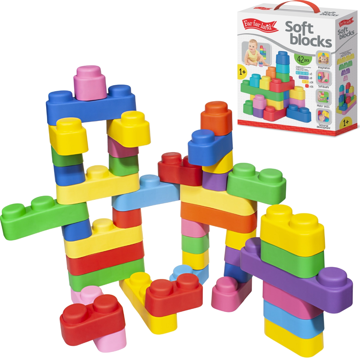 Far Far Landi pehme ehitusklotside komplekt 42 toob lastele suurepärast lõbu tänu oma värvilistele pehmetele klotsidele, mis on valmistatud ohutust materjalist.