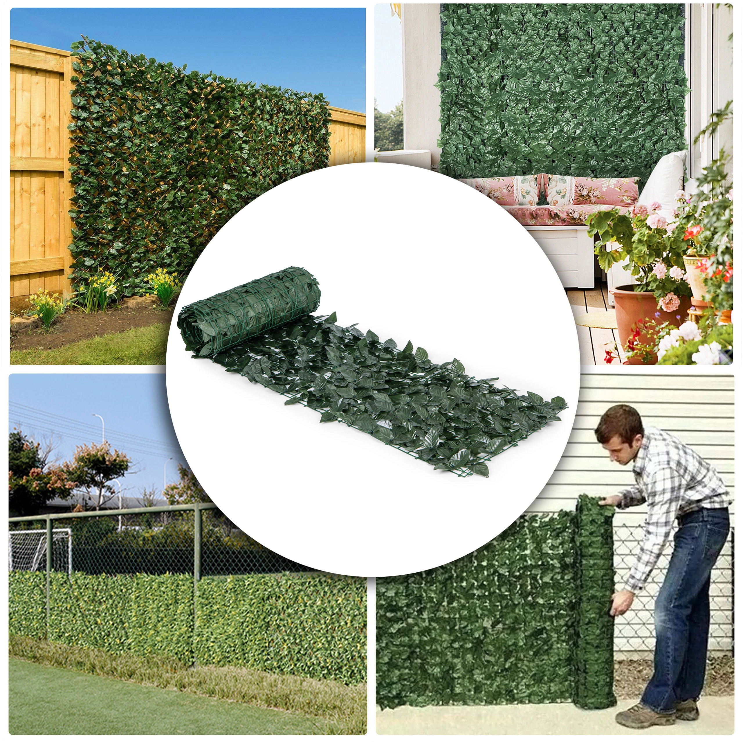Tänu modulaarsele konstruktsioonile saab matte hõlpsasti ühendada ning kohandada erinevatele pindadele ja kujudele. Kvaliteetsed loodusliku tekstuuriga plastlehed on vastupidavad vihmale, päikesele ja UV-kiirgusele, säilitades värvi ja kuju paljudeks hooaegadeks. Paigaldusega saab igaüks hakkama – kaasasolevate tõmblipsude abil kinnitate selle kiiresti piirde, võrkaia või pergola külge.