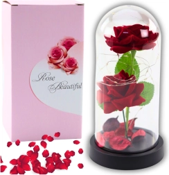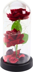 Need elegantsed dekoratiivsed roosid läbipaistva kupli all koos õrna LED-valgustusega on täiuslik kingitus romantilisteks puhkudeks. Kaks kunstroosi koos roosiõielehtedega loovad ainulaadse atmosfääri.