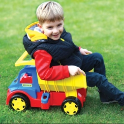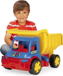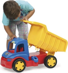 Laste kallurauto Gigant 55 cm on suur 55 cm pikkune veok, mis võlub lapsi võimalusega laadida, maha kallata ja transportida oma lemmikmänguasju. Varustatud esi- ja tagumise kinnituspunktiga haagise või tõmbejoone ühendamiseks. Kallutatav kast mugava käepidemega võimaldab lihtsat kasutamist ja lõputult mänguvõimalusi. Tänu kuni 150 kg kandevõimele sobib kallur ka tõukesõidukiks – kõige pisemad saavad istuda mänguasja peale ja end jalgadega tõugata. Tugev konstruktsioon tagab vastupidavuse, mistõttu on see ideaalne nii õues kui ka toas mängimiseks.