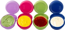 Erinevat värvi kaaned aitavad sisu kiiresti eristada – ideaalne ketšupile, majoneesile, dipidele või maitseainetele.