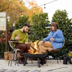 Praktiline 60 cm läbimõõduga aia tulease külgkäepidemete ja stabiilse kolmjala statiiviga toob sinu aeda soojust ja meeleolu. Tänu kuumuskindlale pinnaviimistlusele, kiirele tööriistavabale kokkupanekule ja tugevale rauast konstruktsioonile sobib see suurepäraselt terrassile, aeda ja suvilasse.