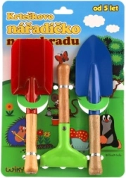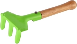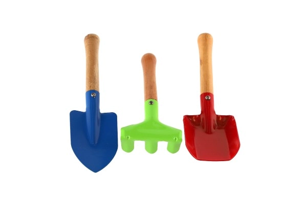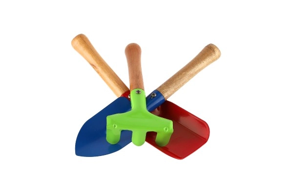 See värviline kolmest osast koosnev laste tööriistakomplekt on loodud olema vastupidav, kerge ja hõlpsasti käsitsetav lastele alates 5. eluaastast. Metallist tööosad tulevad toime tavaliste aiatöödega, samas kui ergonoomilised puidust käepidemed sobituvad hästi lapse kätte.