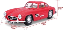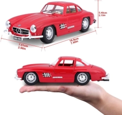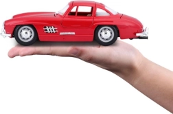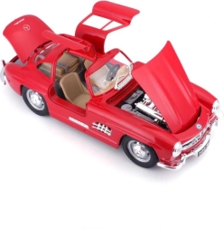 Avastage ajatu elegants MERCEDES‑BENZ 300 SL mudelis BBURAGO täpse teostusega. Punane värvkate, peened kroomitud detailid ja proportsionaalselt ustavad vormid teevad sellest pilkupüüdva eseme vitriini või töölaua jaoks. Metallist kere (die‑cast) annab mudelile väärika ja vastupidava mulje.