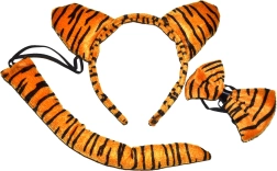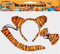 Selle lustaka komplektiga pälvite hõlpsalt tähelepanu igal peol. Kerge ja mugav peavõru kõrvadega, stiilne lipsuke ning saba loovad hetkega vahva tiigrikostüümi, mis sobib suurepäraselt mis tahes rõivastusega.