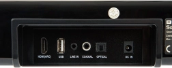 - HDMI (ARC), optiline sisend (Toslink), koaksiaal (Coaxial), USB, line-in (AUX)