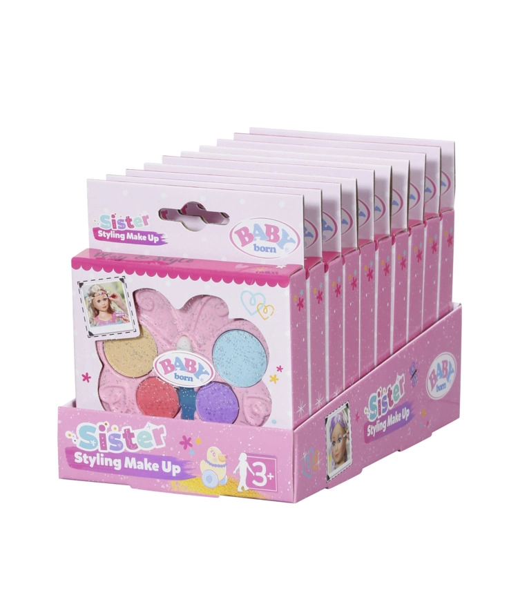 BABY born Sister meigikomplekt toob veelgi rohkem värve ägedateks stiilideks. Liblika kujuline värviline meigipalett koos aplikaatoriga võimaldab luua mitmesuguseid meigilahendusi. Pärast mängu saab meigi kergesti eemaldada niiske lapiga, mistõttu sobib see nii nukkudele kui ka laste nahale.